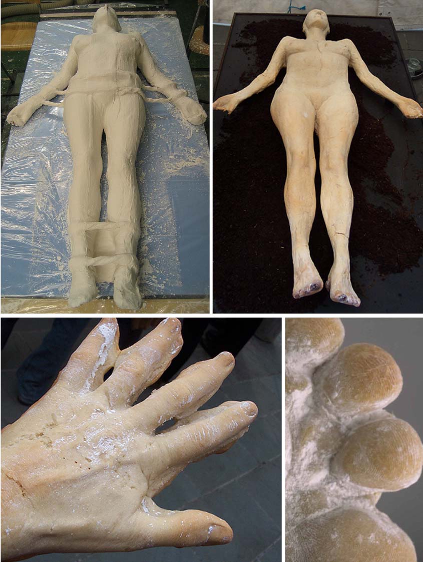 Human castings of artist Sharon Baker in bread dough. Lower two photos © and courtesy of Sharon Baker, sharonbakerartist.co.uk