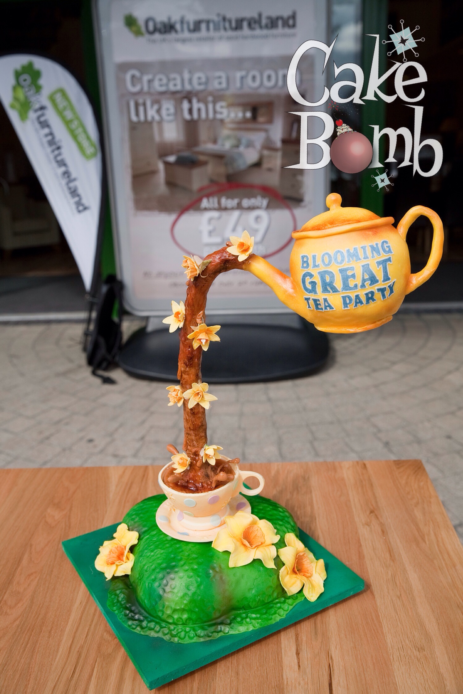 The cake was later donated by Oak Furniture Land to Groombridge Place for their special ‘Alice in Wonderland’ Easter Holiday Event and was put on display in the restaurant before being consumed by the public.