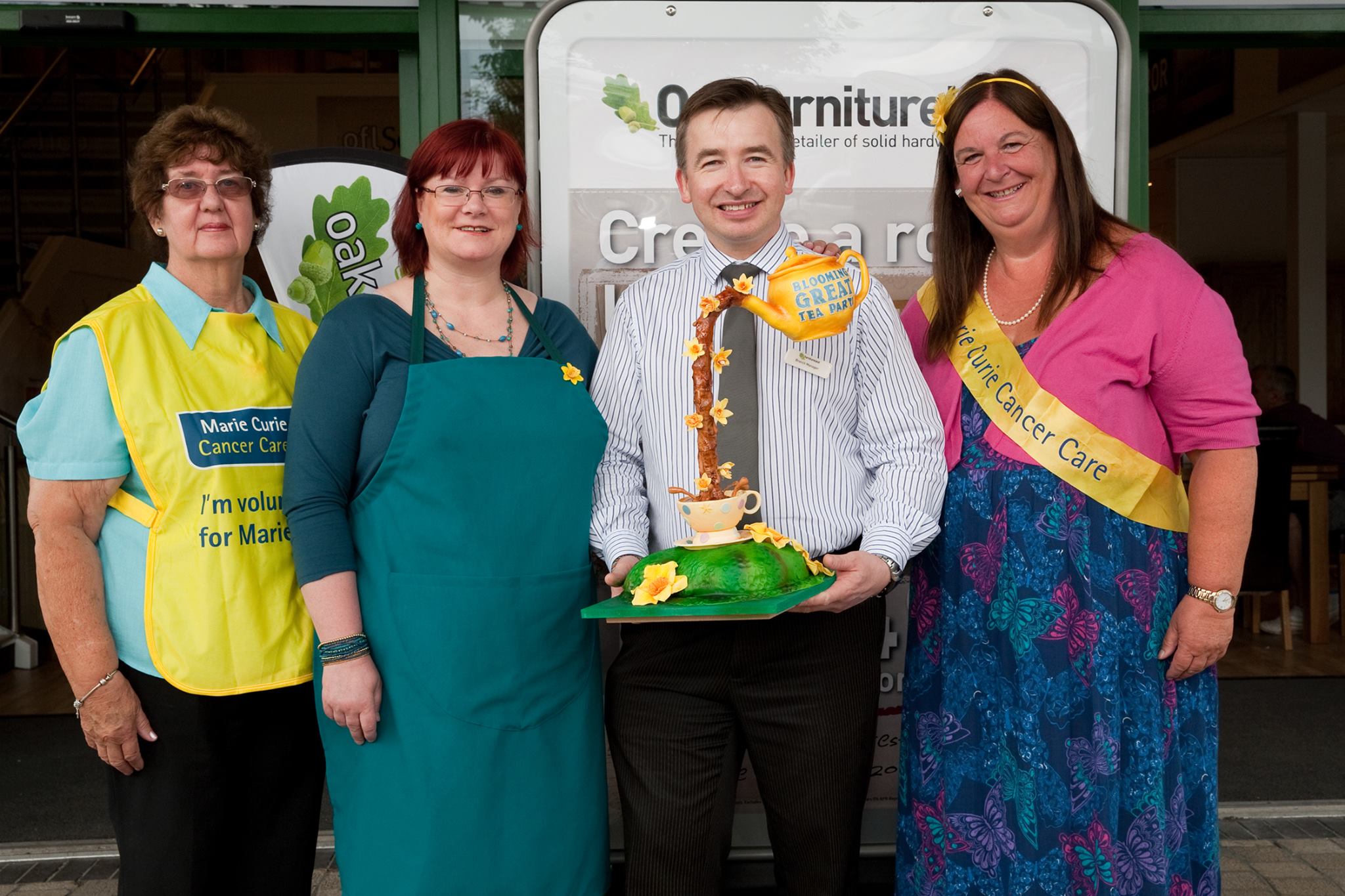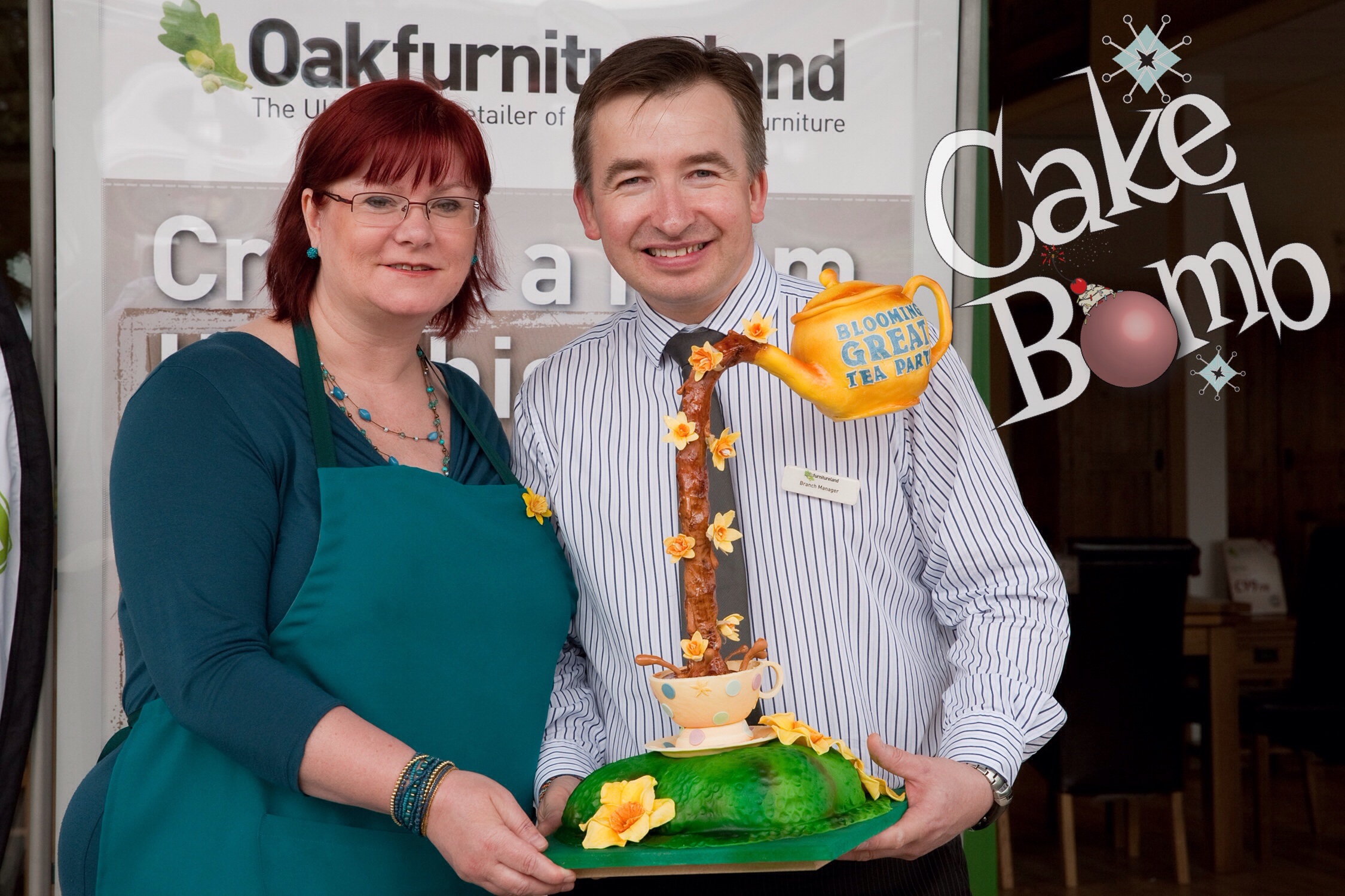 For the Paisley store opening CakeBomb was pleased to introduce local cake artist Natalie Hume from ‘Tilly Makes Cakes’. Natalie made a huge Haggis cake to celebrate the occasion. The cake was later donated by Oak Furniture Land to local charity Home Start and accepted on their behalf by Councillor Hall, who also attended the store opening.