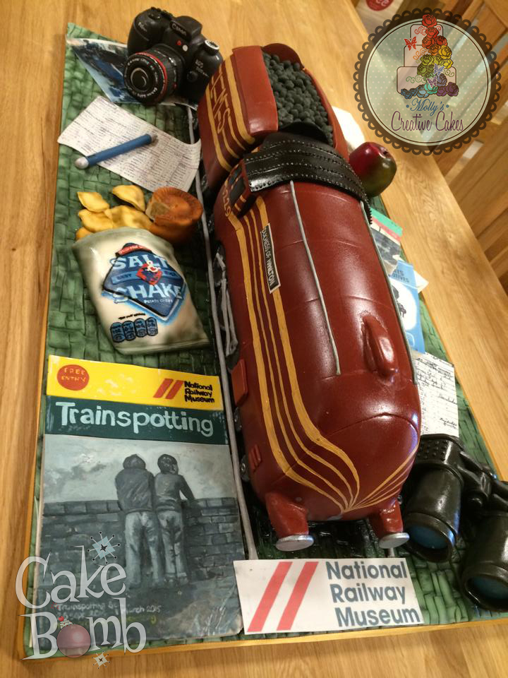The cake is an incredible piece of work. What makes it adorable for me are all the details – the trainspotters’ paraphernalia: Smith’s crisps, pork pie, notebook, camera. It’s beautiful, authentic and funny, a bit like Molly. [Stop sucking up to Molly. Ed.]